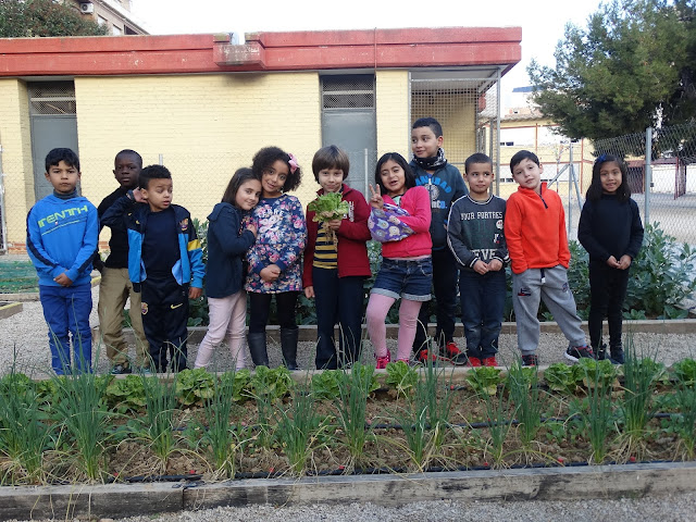 Nueva variedad de patata para sembrar en nuestro huerto. Hoy tocó la patata Desirée (colorá) y el alumnado, los pequeños y pequeñas de 1º B. Ellos fueron los encargados de llevar a cabo la labor.